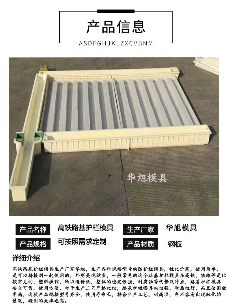 高鐵路基護(hù)欄模具符合設(shè)計(jì)需求,韌性強(qiáng),破損率低,便于組裝。