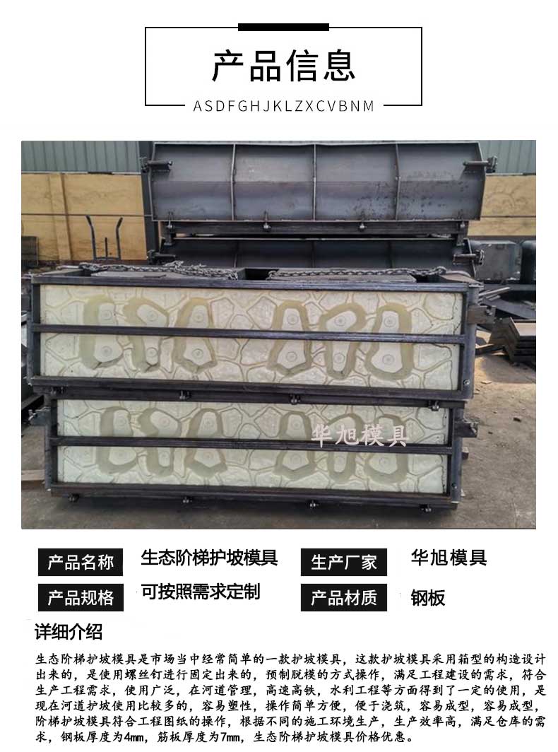 階梯式護(hù)坡模具的寬度為50厘米、35厘米和25厘米的類(lèi)型,可根據(jù)需要定制。