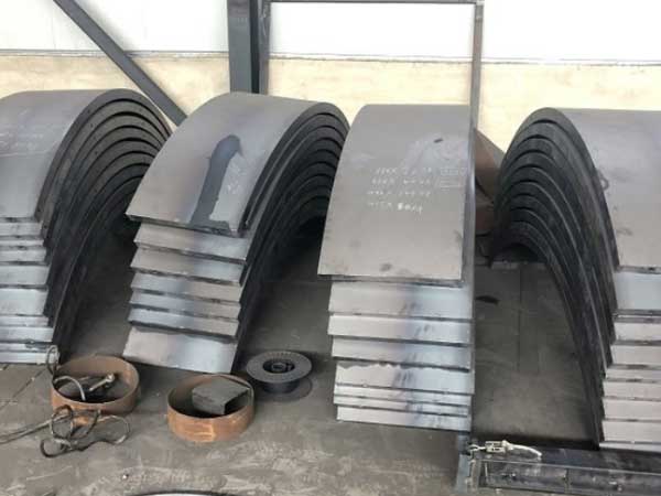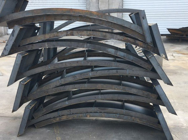 它是由上拱圈和下拱圈還有兩根直線段鋼板組成,拼接好之后是一個面積的大的模具。