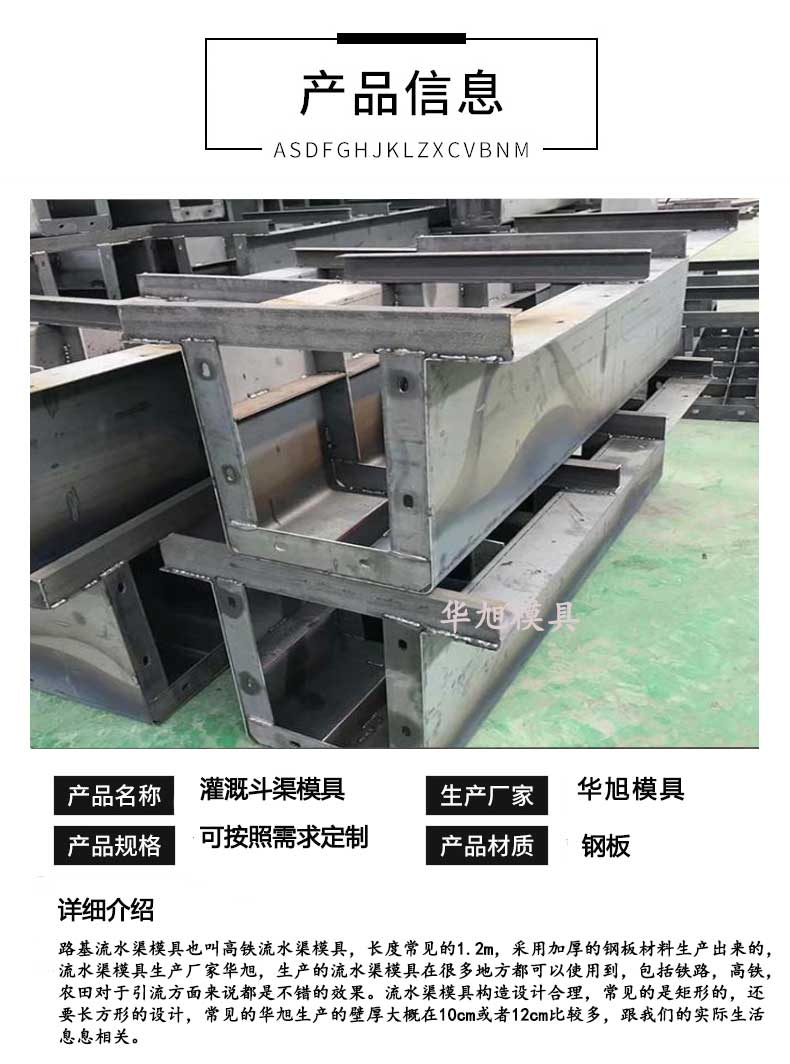 流水渠模具符合生產(chǎn)原理,施工效果不錯(cuò),而且還可以采用加長(zhǎng)的構(gòu)造設(shè)計(jì),體積大,型號(hào)都可以定制。