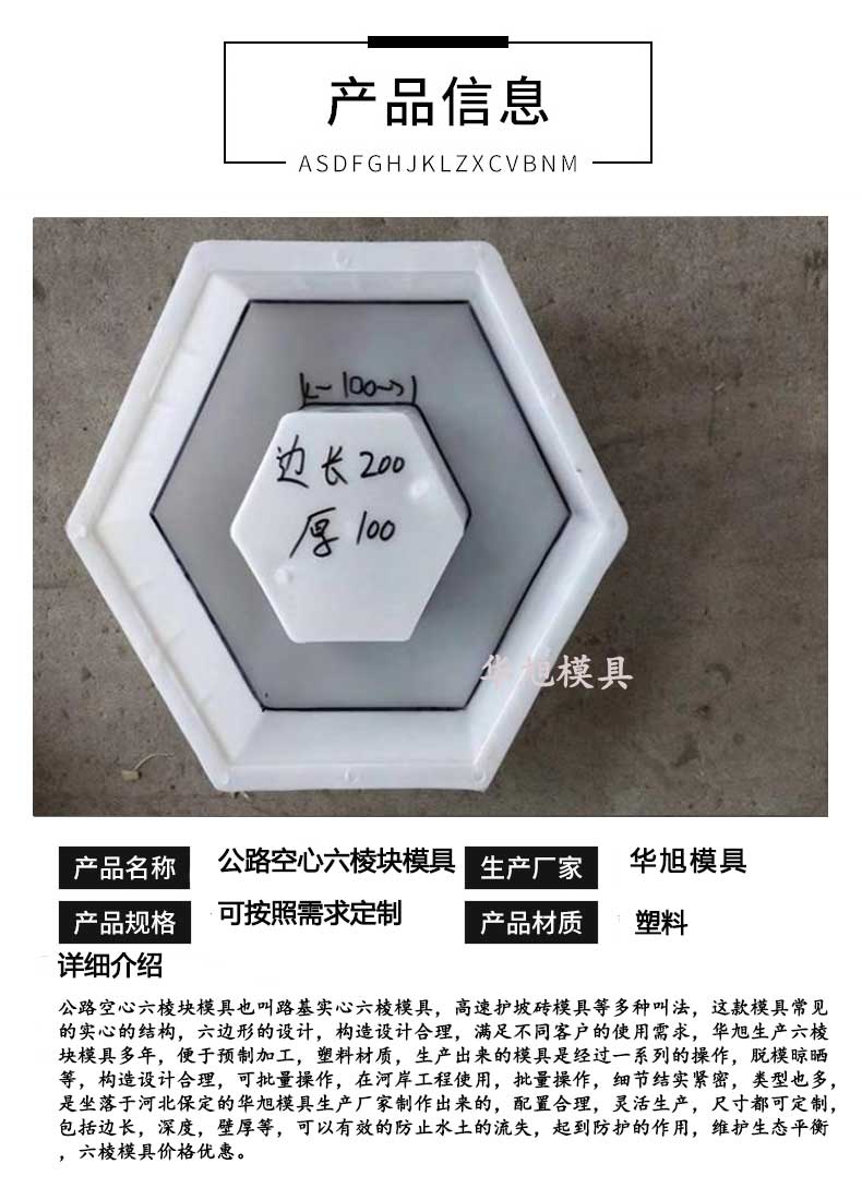 路基實(shí)心六棱模具壁厚,承壓都可以調(diào)整,根據(jù)具體的施工需求來(lái)選擇。