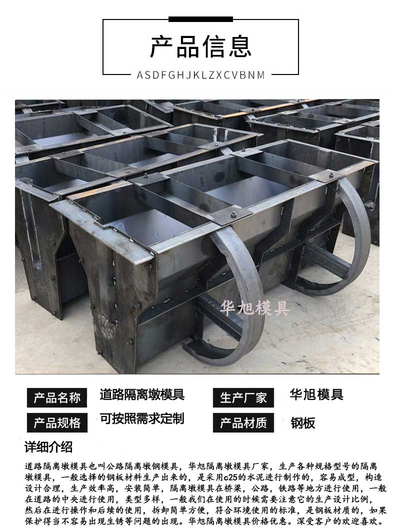 公路隔離墩鋼模具設計合理,性能穩(wěn)定,而且滿足不同客戶的需求,生產符合標準。