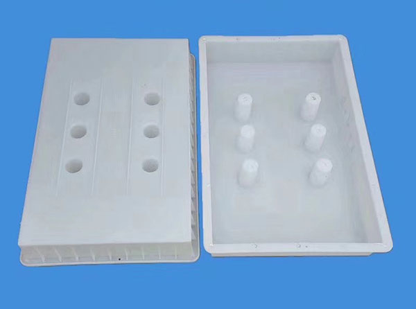4、兩個模具組裝到一起使用,中間是長的空心的,兩側(cè)都有向內(nèi)的凹槽,節(jié)約原材料而且便于脫模。