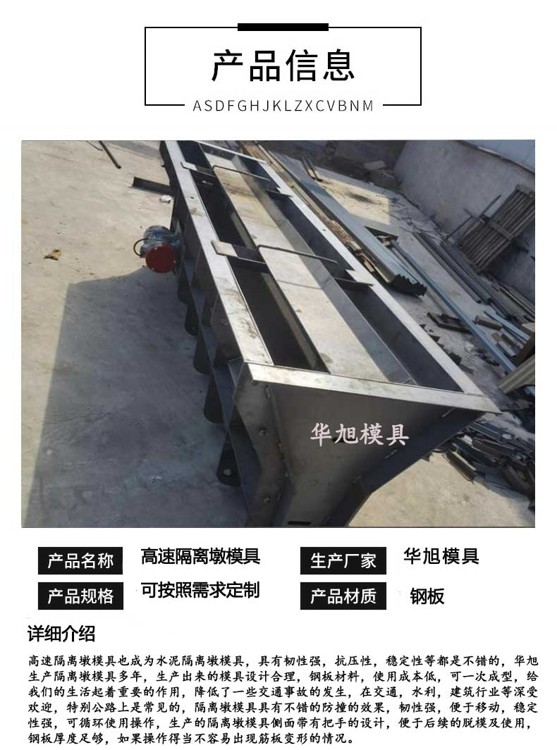 華旭生產(chǎn)的高速隔離墩模具符合生產(chǎn)標準,而且出廠以前都經(jīng)過檢測,確保隔離墩模具符合施工要求。